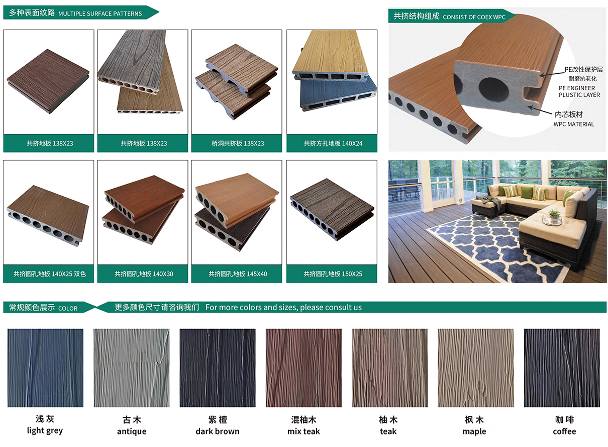 捷科共挤塑木保留了传统塑木的防水防虫防腐的物理性能,更加强了耐磨、抗刮、抗污和耐候性能。共挤地板的颜色和纹理,更加逼真和持久,变化丰富,是应用于公园、绿植、海边度假村、家居户外设施等用途的优良环保材料。